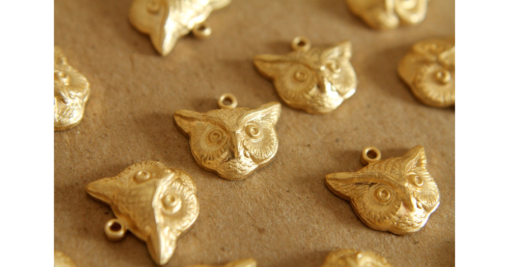 2 pc. Raw Brass Owl Heads: 16mm by 15mm - made in USA | RB-117