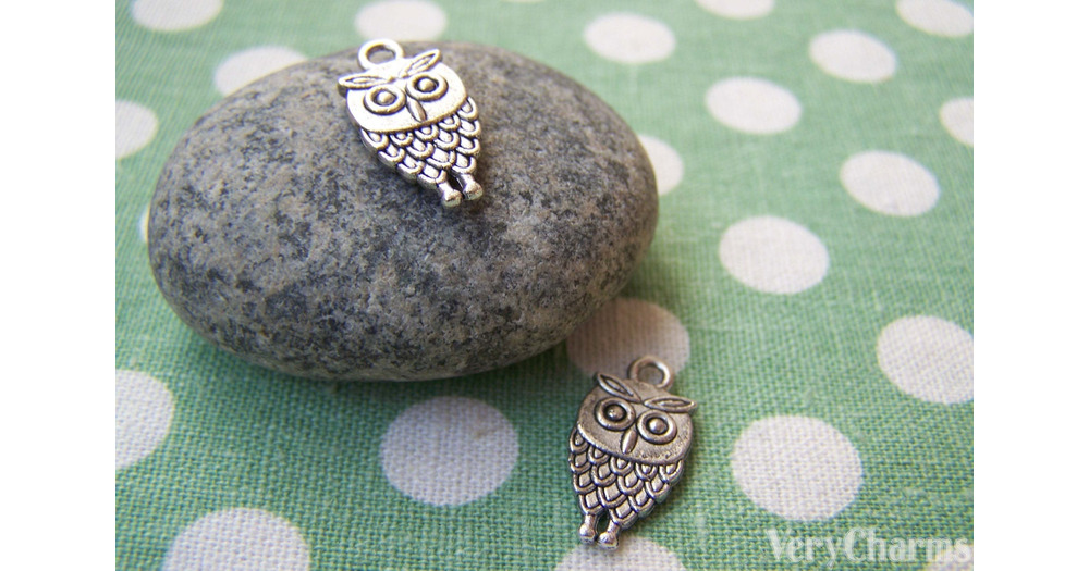 20 pcs Antique Silver Owl Charms Double Sided 9x15mm A1851
