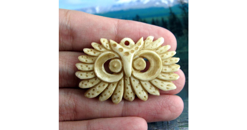 Carved buffalo bone owl pendant P772