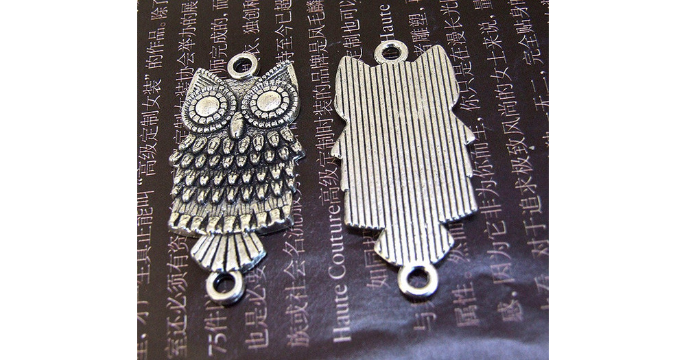 4 Silver Owl Pendant Beads: Filigree Metal Connector, 38mm