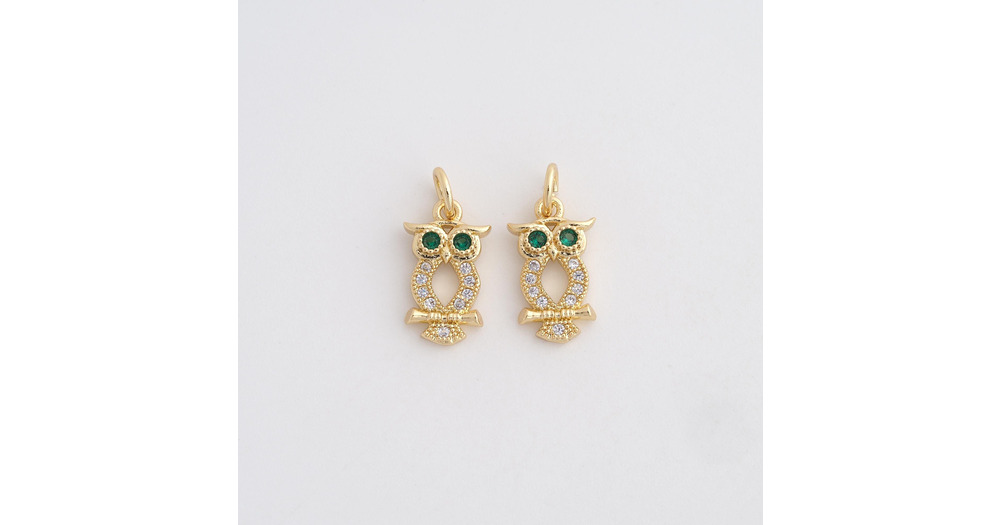 Gold CZ Owl Charms,18K Gold Filled Flying Pendant,DIY Jewelry Making Supply