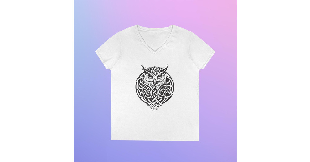 Celtic Owl Knotwork V-Neck T-Shirt | Nordic Tribal Owl Tee