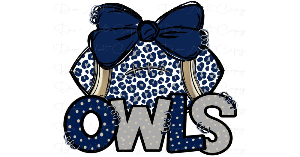 Owls Football and Bow Custom Order - Doodle Letters - School Spirit - Sublimation PNG - Digital Art