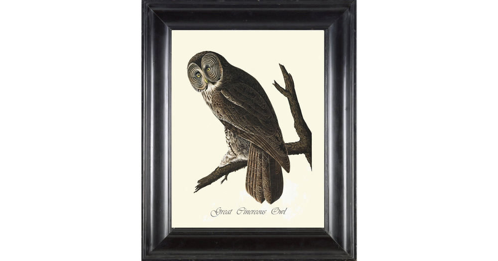 Great Cinereous Owl Print Art 80 Beautiful Antique James Audubon Bird Forest Nature Illustration Cab