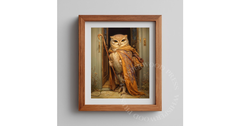 Printable Rustic Fantasy Owl Wizard Art - Storybook Forest Owl Illustration, Vintage Adventure Decor