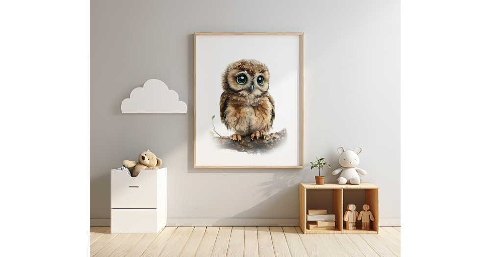 Cute Baby Owl Woodland Nursery Art Print For Children Watercolor Owl Cub Poster For Kids Room Forest