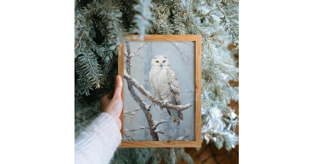 Snowy Owl Print Rustic Winter Print Christmas Print Vintage Christmas Wall Art Holiday Decor Winter