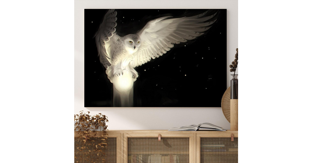 White Owl Canvas Print, Night Predator, Wild Animal Wall Decor