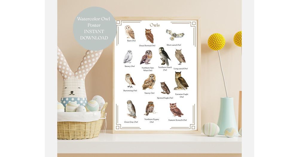 Owl wall art for homeschool decor printable owl poster for nursery nature print watercolor poster fo