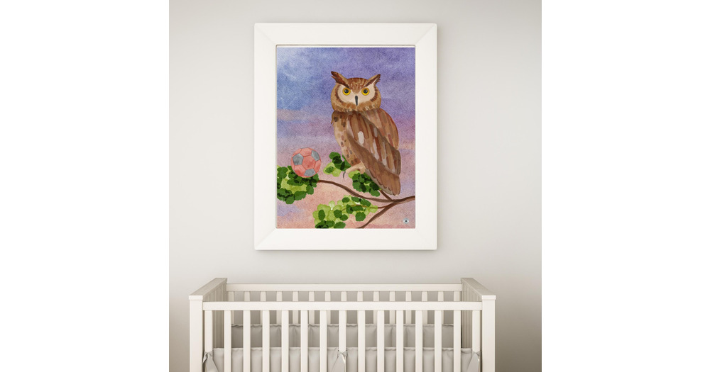 Soccer Owl Watercolor Nursery Art Print: Sports Theme (Digital Download)