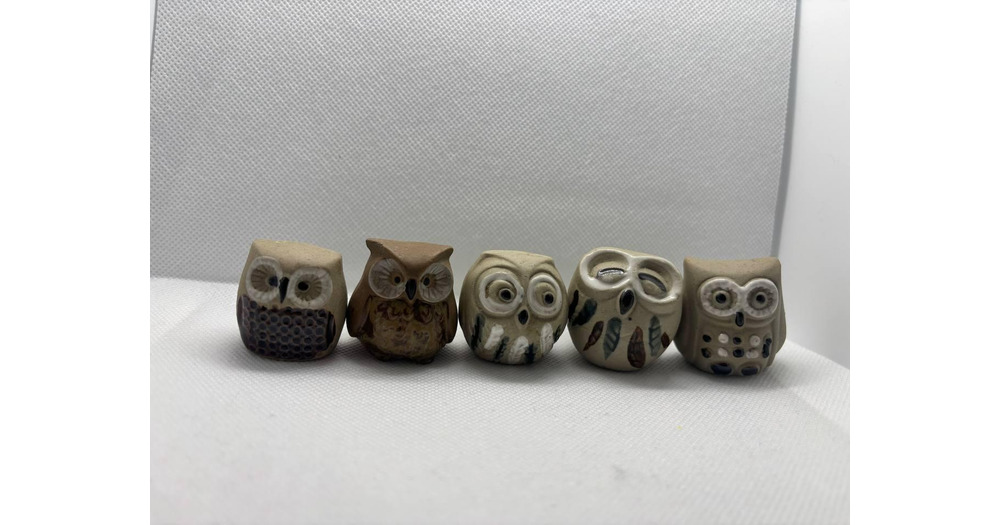 Set of 5 Handmade Clay Owl FigurinesSet of 5 Handmade Clay Owl Figurines 1970s Taiwan