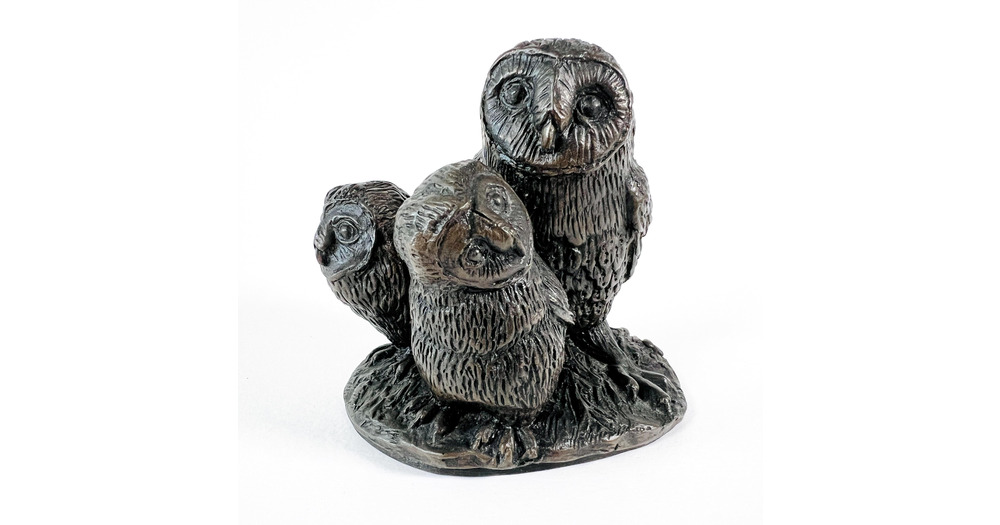 Barn Owl Figurine, Vintage Cold Cast Bronze Ornament, Owlets Trio