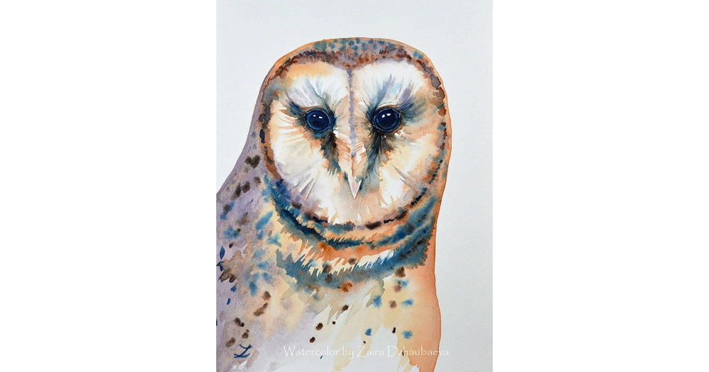 Barn Owl Original Watercolor Painting Owl Art Owls Bird of Prey Birds Wildlife Small Painting Owl Ey