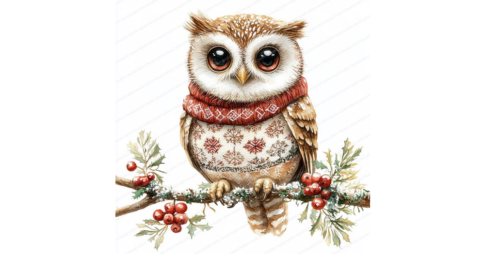 24 Christmas Owl Sweater Clipart | Festive Holiday Illustration | Printable Watercolor clipart | Hig