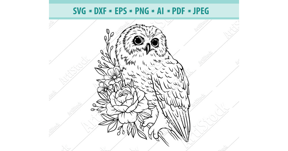 Owl SVG file, Owl with Flower SVG, Owl cut file, Night birds Svg, Floral animal Svg, Owl on branch S