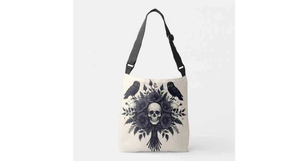 Goth Bouquet with Three Skulls and Two Owls Crossbody Bag