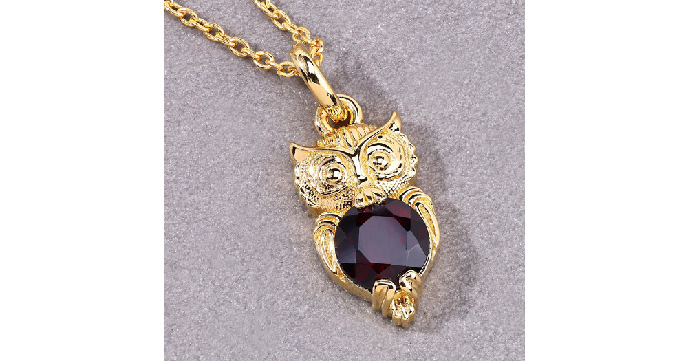 Garnet Owl Necklace, Gold Plated Silver Owl Pendant, Bird Pendant, Art Deco Pendant, Gothic Jewelry,
