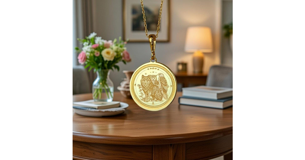 Wolf Owl Raven Brass Pendant Necklace | 30mm Round Medallion | Spirit Animal Symbol Jewelry | 18 Inc