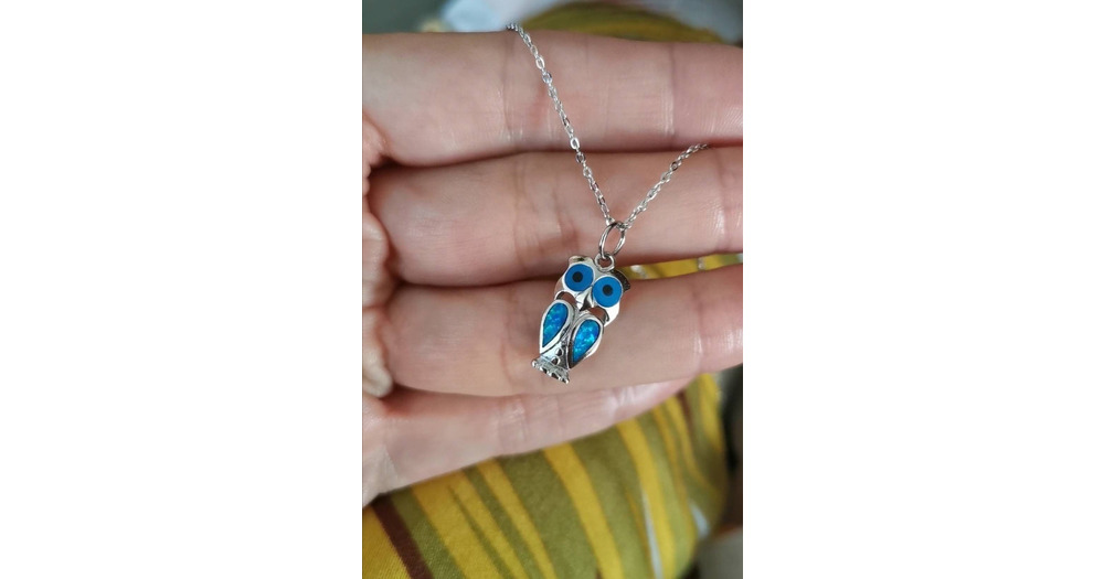 Sterling Silver Blue Opal Owl Necklace - Handmade 925 Pendant