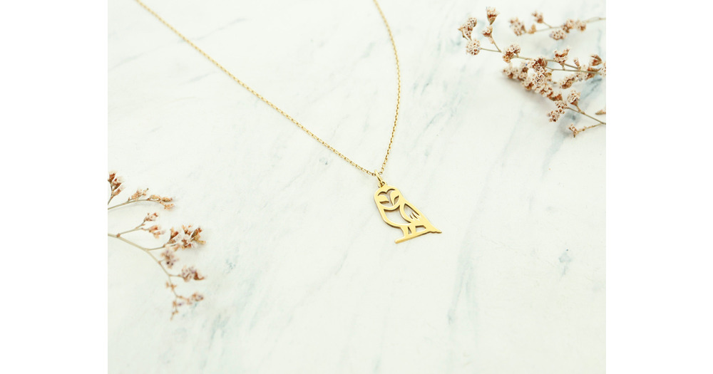 14K Solid Gold Owl Pendant Necklace, Dainty Bird Jewelry Valentines Day Gift
