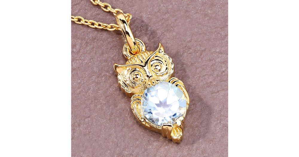 Blue Topaz Owl Necklace, Gold Plated Silver Owl Pendant, Bird Pendant, Art Deco Pendant, Gothic Jewe