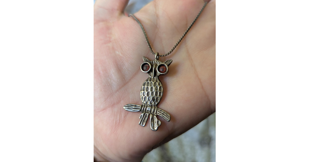 Funky Owl Sterling Silver Pendant w Sterling Chain Signed JS