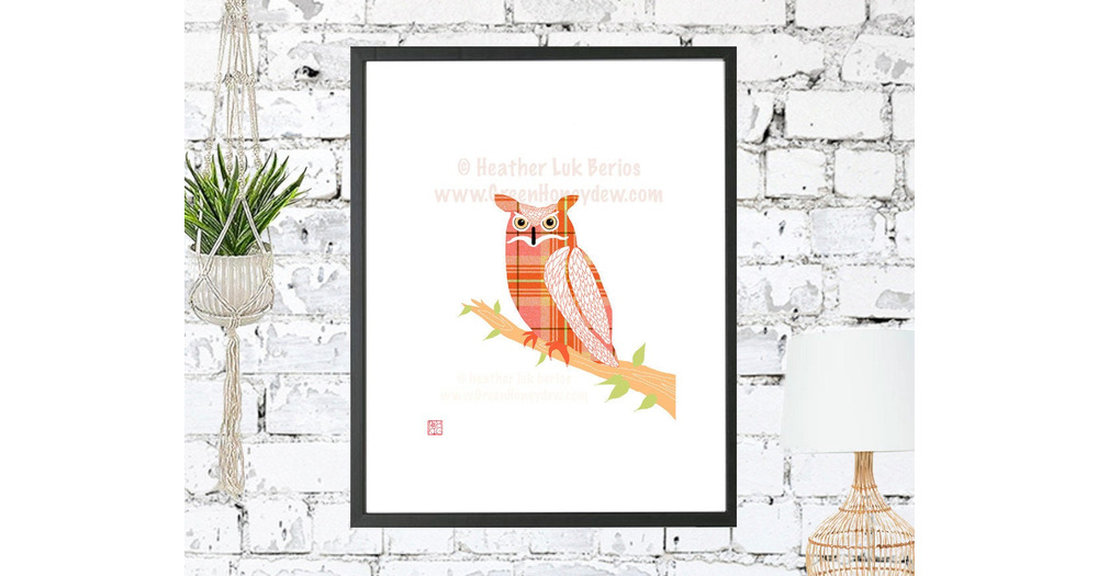 Owl - Art Print, Beautiful Orange Bird, Illustration, Modern, Exotic, Contemporary, Animal Print, Gi