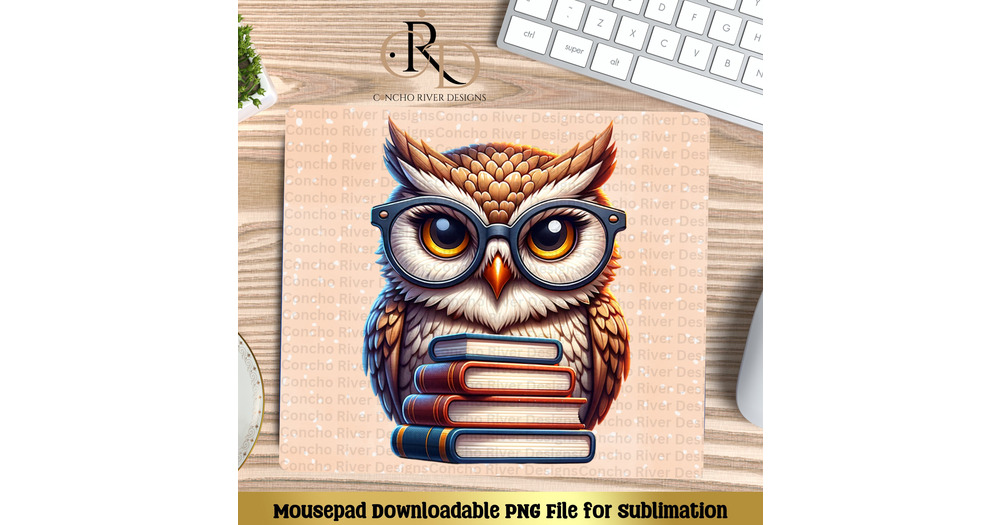 Owl mouse pad PNG file, sublimation design for mousepad, books mousepad PNG, instant digital downloa