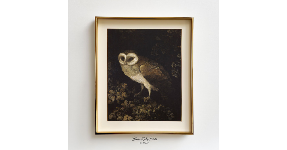 Moody Owl Painting: Vintage Rustic Woodland Decor (Digital Download) #327