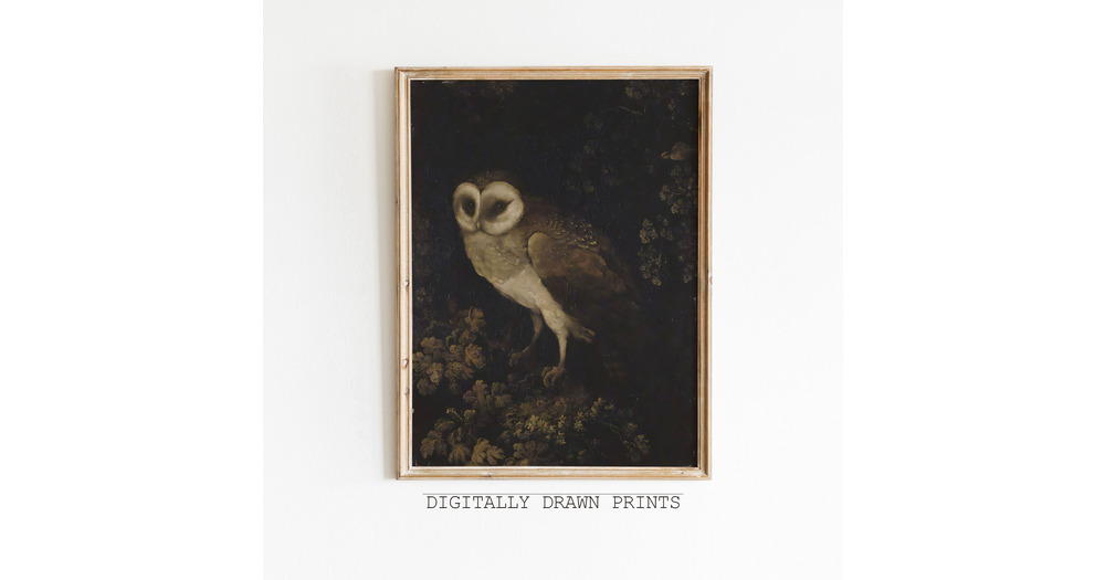 Halloween Printable Wall Art, Antique Owl Painting, Dark Academia Printable Wall Art, Moody Rustic B