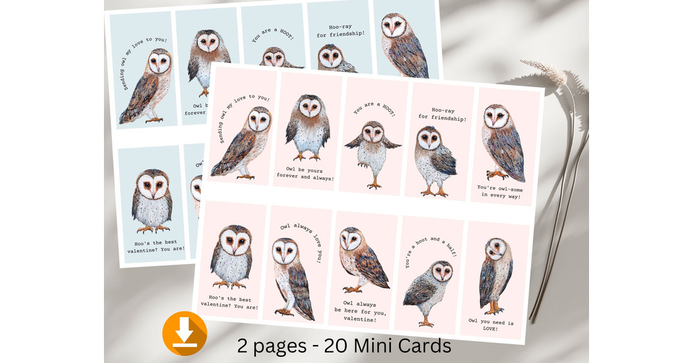 Mini Owl Valentine Cards: Classroom Valentines (Digital Download)