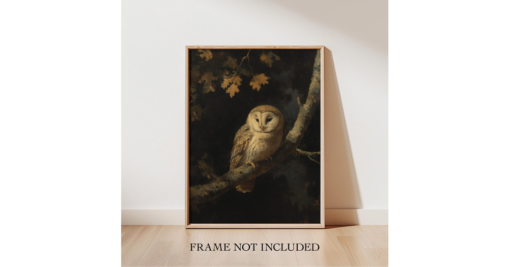 Moody Owl Painting Print, Dark Cottagecore Decor, Vintage Bird Print, Dark Academia, Gothic Woodland