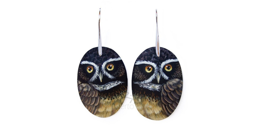 Pair of Spectacled Owl Earrings | Hand Painted Jewels