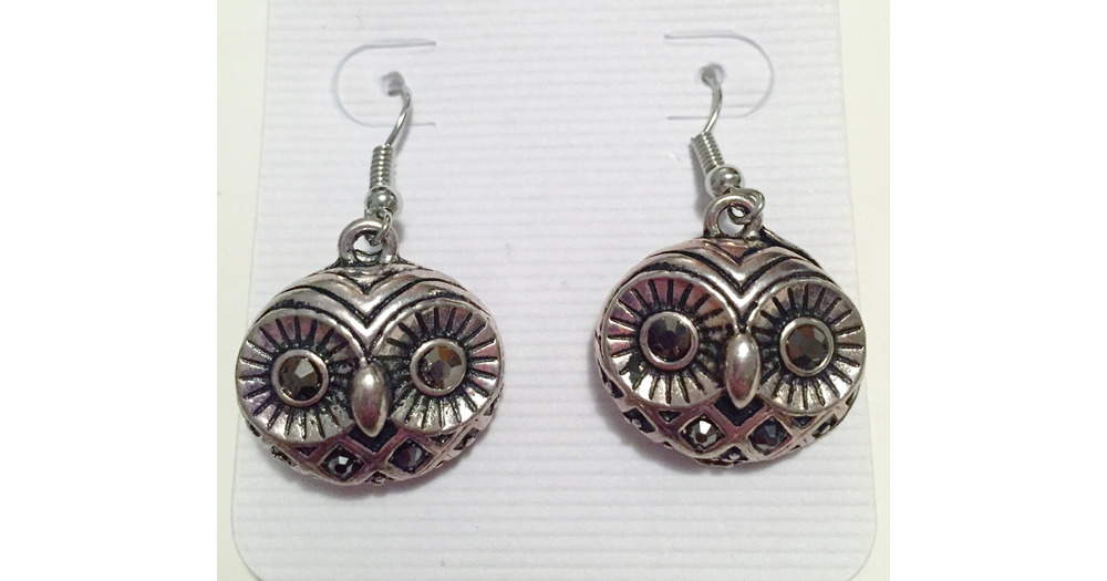 Antique Silver Tone Crystal Embellished Owl Earrings