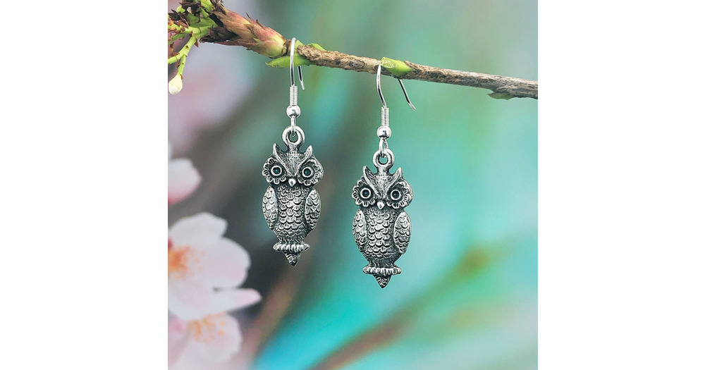 Owl Earrings, Owl Gifts, 3-D Shape, Handmade Solid Pewter & Stainless Steel
