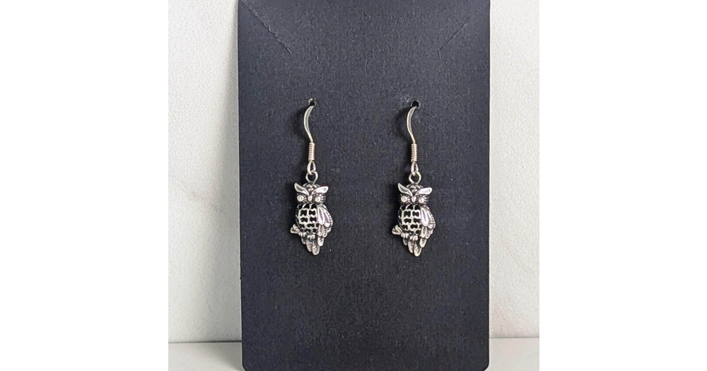 Vintage Sterling Silver Adorable Owl Dangle Earrings