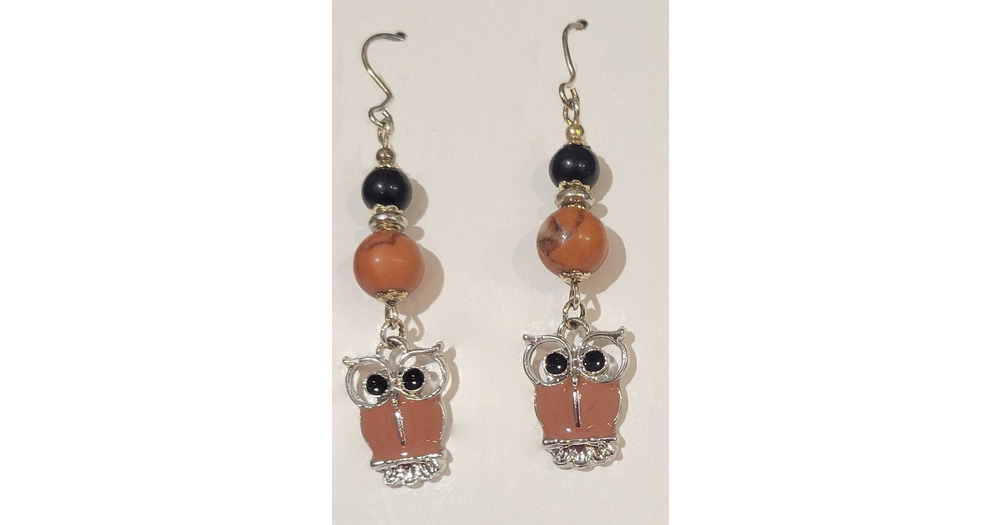 Cloisonné' Owl Gemstone Dangle Earrings
