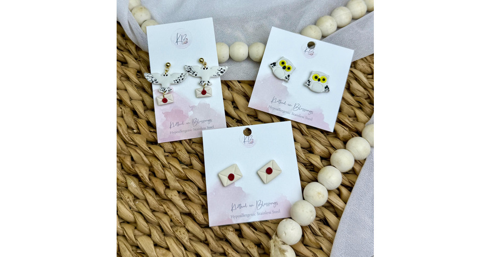 Snowy Owl Earrings | Wizard School Letter, Hypoallergenic Studs