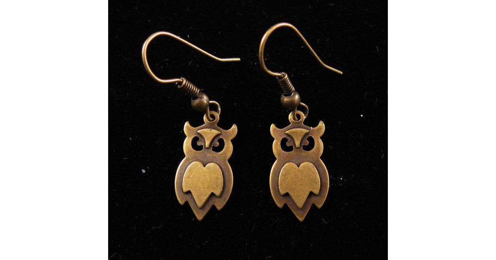 vintage art deco style design brass owl ornate layer petite earrings free shipping