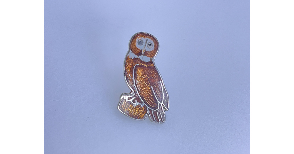 Vintage Pin Brooch Silver Toned Enameled Owl Brown Black White Used