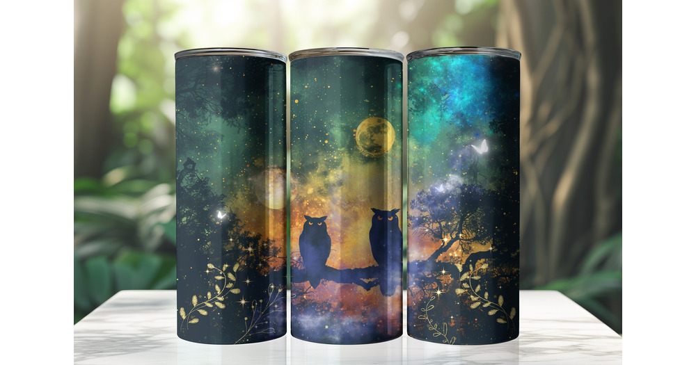 Celestial Owl, Moon, Universe, Mythology, Astrology, night sky, star, 20oz Tumbler Wrap, Skinny &