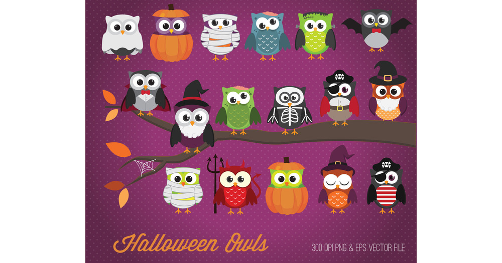 Halloween Owl Clipart: Spooky Autumn Graphics (PNG, EPS)