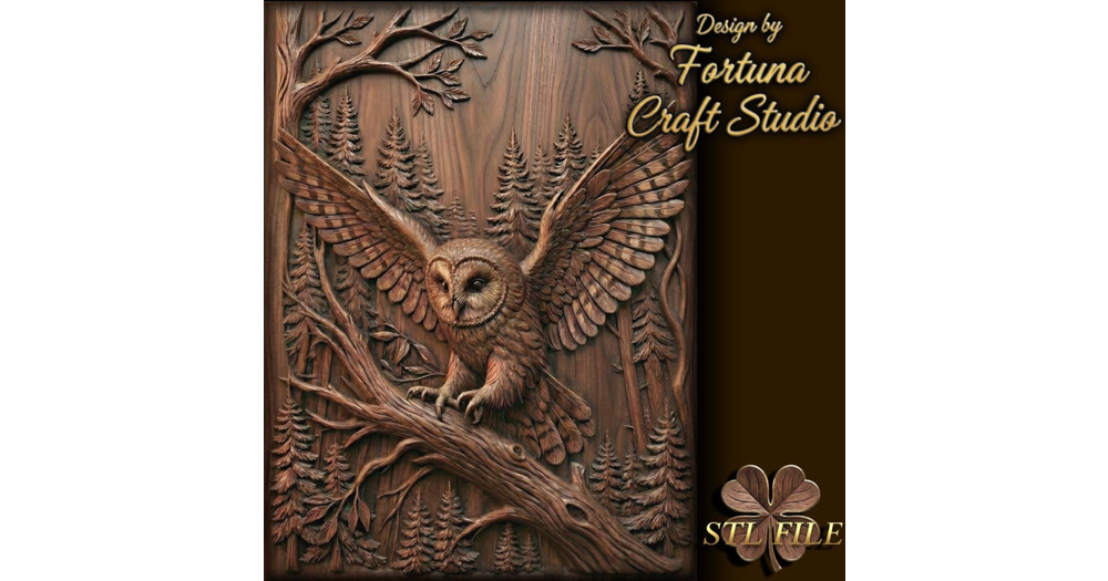 Owl on a tree 3D Relief – STL File for CNC & 3D Printing. Wildlife Wall Art.