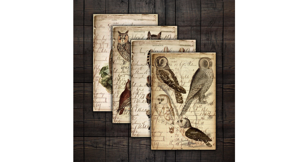 Antique Owl Ledger Pages: Junk Journal Printable (Digital Download)