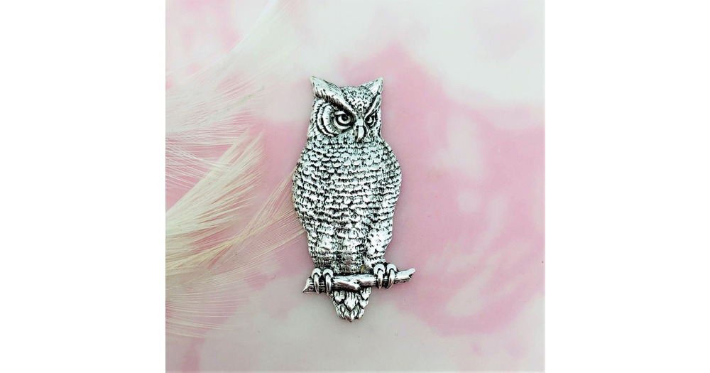 ANTIQUE SILVER Large Owl on Branch ~ Owl Stamping ~ Jewelry Ornament Finding (BB-014)