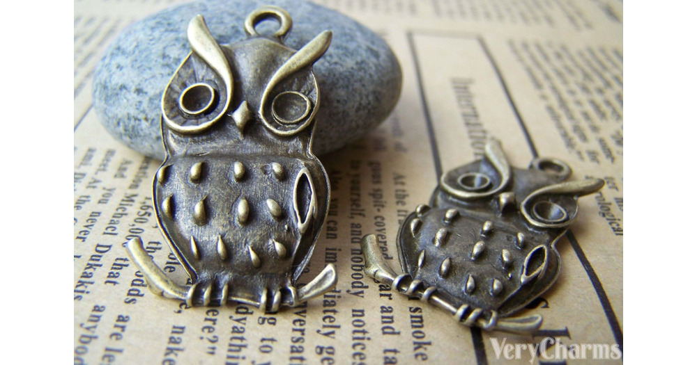10 pcs of Antique Bronze Owl Pendants Charms 19x38mm A141