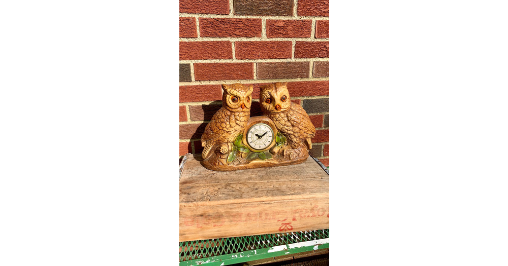 Vintage Heavy Chalkware Pair of Owls Clock Movement Made by Lanshire | Retro Owl Decor MCM Mid Centu
