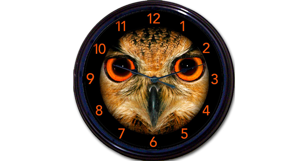 Owl Wall Clock: Wildlife Decor with Orange Eyes