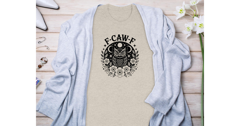 Floral Owl T-Shirt, Celestial Moon Starry Design