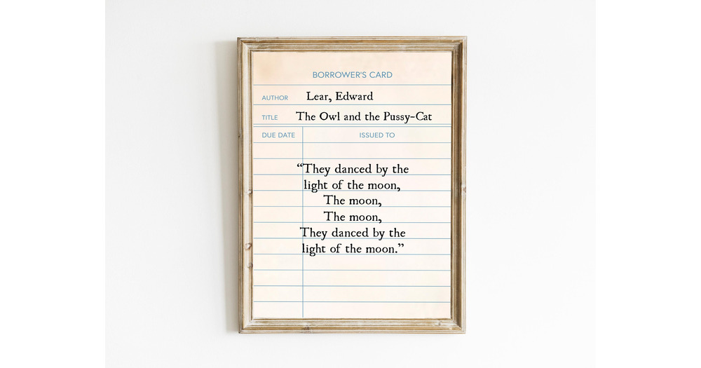 Owl & Pussy-Cat Nursery Print: Library Card Wall Art (Digital Download)